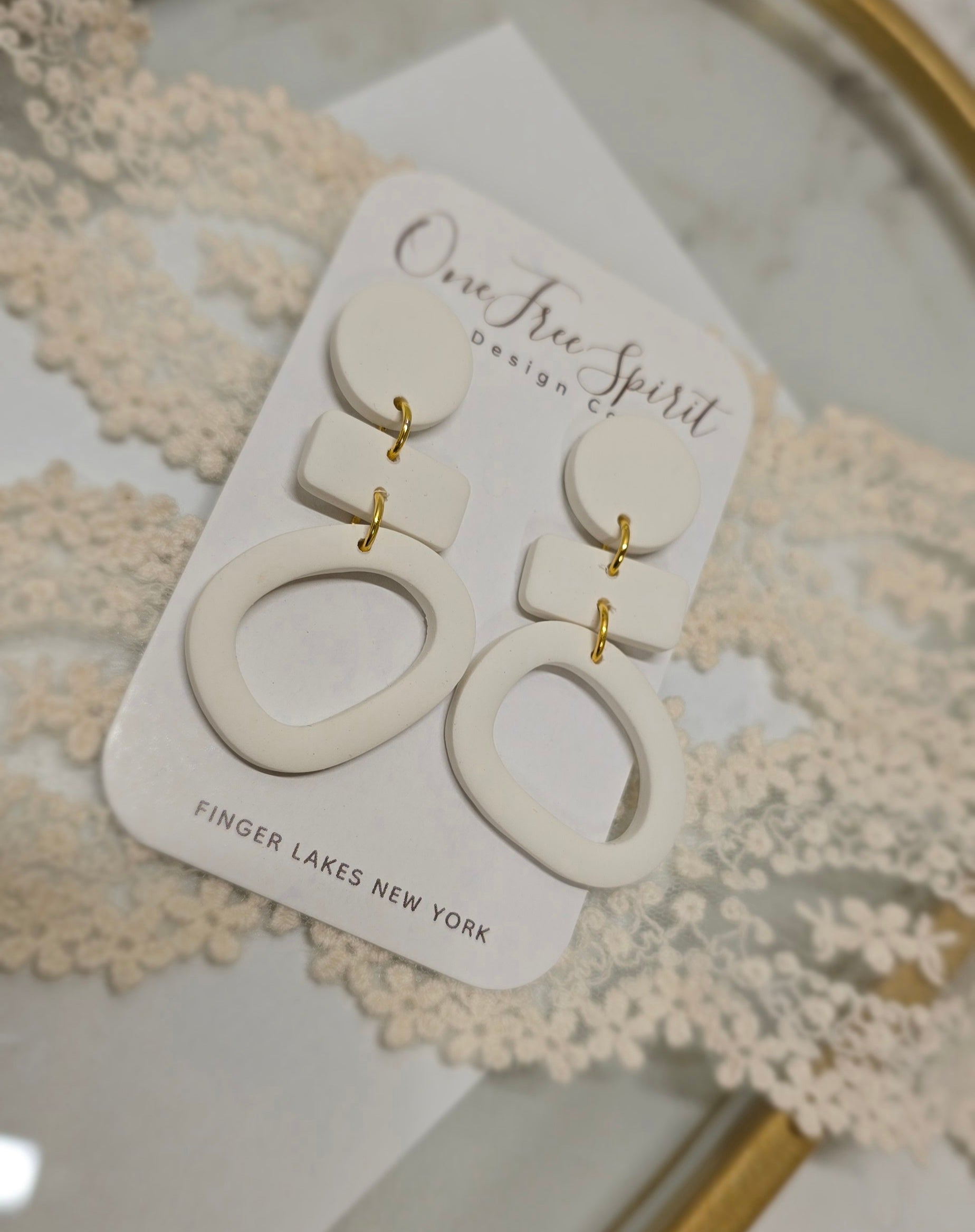 White polymer clay earring symmetrical and abstract design. Posts are hypoallergenic and nickle-free.