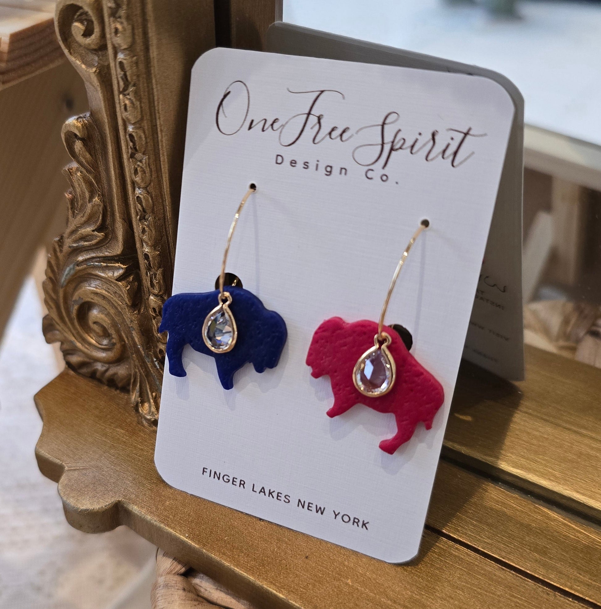 Bills Mafia chicks can get glammed up too! These Buffalo earrings have made with blue and red polymer clay and are adorned by 18k gold cz charms on 14k gold-filled hoops. Take the either charm off for 2 different looks wear it all together to level up your outfit.